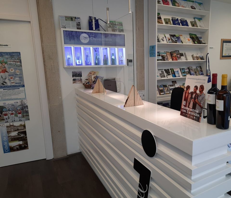 Oficina municipal de turismo de Verín. Punto de información turística sobre los diferentes lugares de interés en el municipio: iglesias, monumentos, arquitectura civil, cruceros, museos, plazas, parques, espacios naturales, celebraciones y eventos, incluída en la red de oficinas de turismo Eurocidade Chaves-Verín.